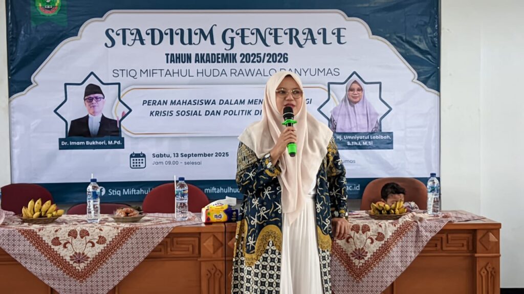 Banyumas, 13 September 2025 – Sekolah Tinggi Ilmu Al-Qur’an (STIQ) Miftahul Huda Rawalo Banyumas kembali menggelar kegiatan Stadium Generale sebagai pembuka perkuliahan Semester Ganjil Tahun Akademik 2025/2026. Acara ini bertempat di Aula STIQ Miftahul Huda Rawalo pada Sabtu, 13 September 2025, pukul 08.00 WIB.