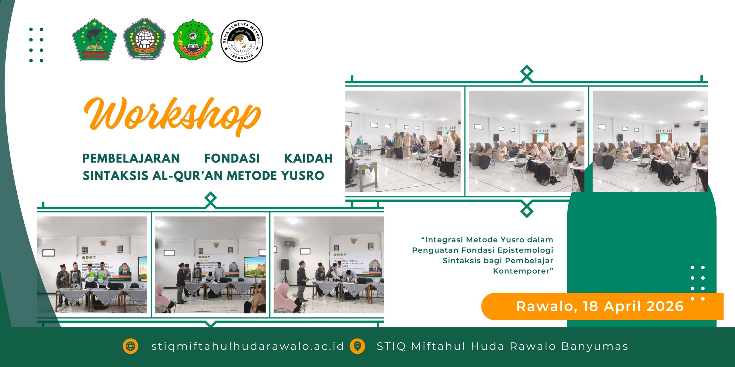 RAWALO – Sekolah Tinggi Ilmu Al-Qur’an (STIQ) Miftahul Huda Rawalo sukses menyelenggarakan Workshop Pembelajaran Fondasi Kaidah Sintaksis Al-Qur’an dengan mengusung tema “Integrasi Metode Yusro dalam Penguatan Fondasi Epistemologi Sintaksis bagi Pembelajar Kontemporer”, Sabtu (18/4/2026).