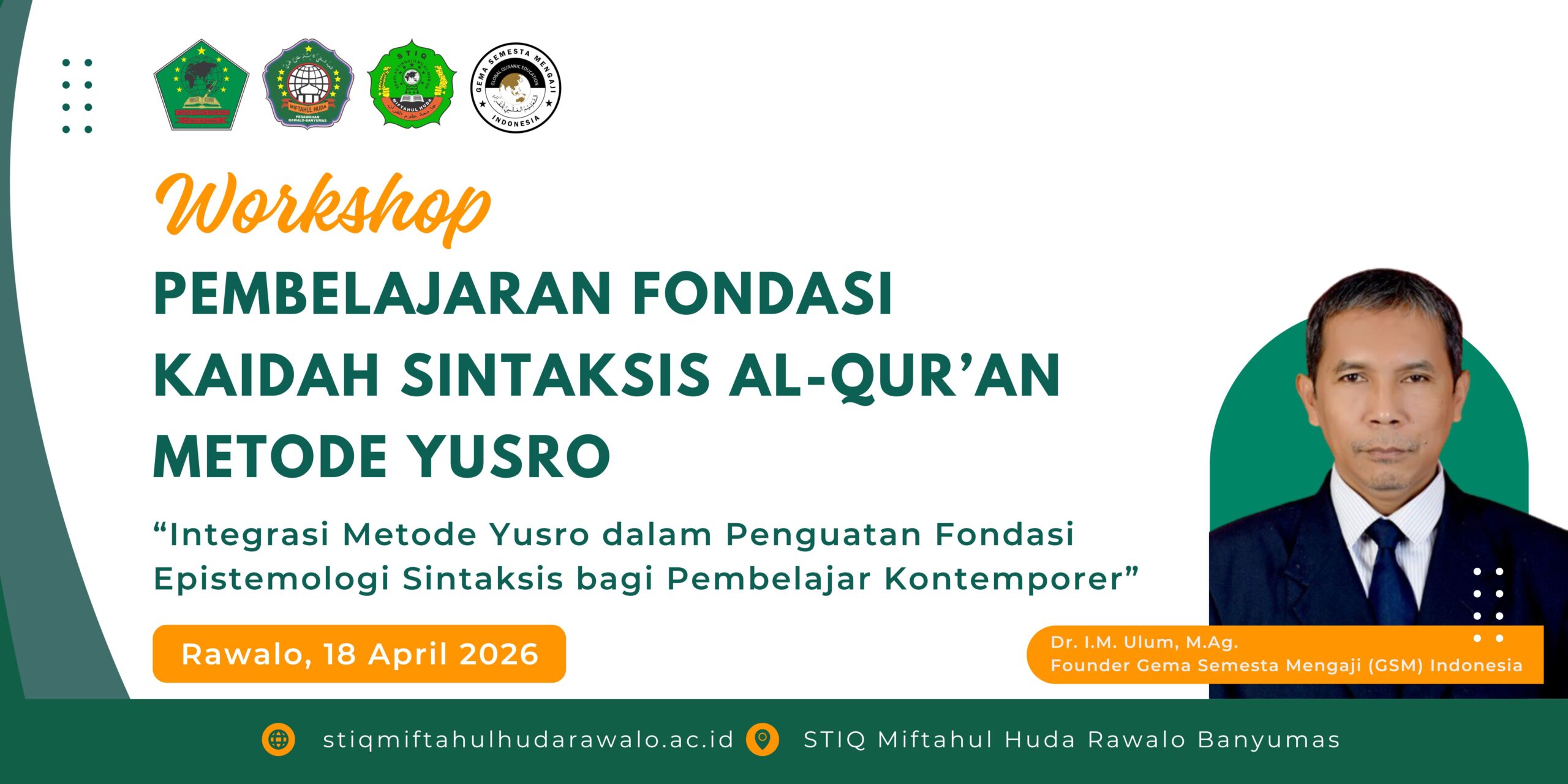 Bertindak sebagai pemateri utama sekaligus mitra kolaborasi, Dr. Itah Miftahul Ulum, M.Ag., pendiri founder GSM Indonesia, memaparkan bagaimana Metode Yusro menyederhanakan kaidah sintaksis (nahwu) yang selama ini dianggap rumit.